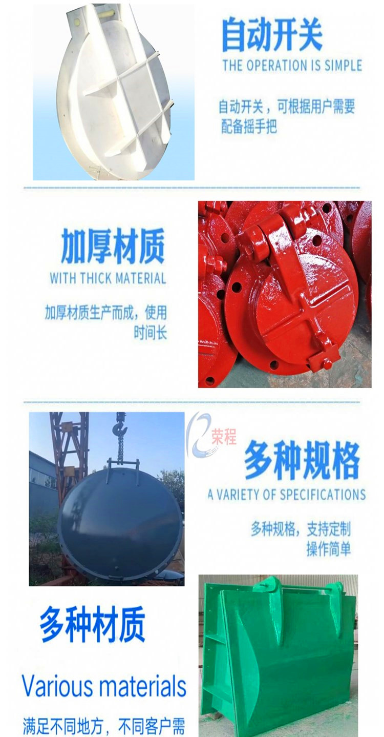 拍門可以做成圓的和方形的,還設(shè)備廣泛應(yīng)用于泵站出口的斷流自動(dòng)控制,或用于江河海邊無(wú)人管理的水利排水口,在順利排水的同時(shí)又防止水流倒灌,安全,實(shí)用,節(jié)能,不需任何電力,液壓動(dòng)力等外力,靈活,可靠,是現(xiàn)代水利管理不錯(cuò)節(jié)能產(chǎn)品。業(yè)務(wù)咨詢13582492022孫經(jīng)理,微信同號(hào)。