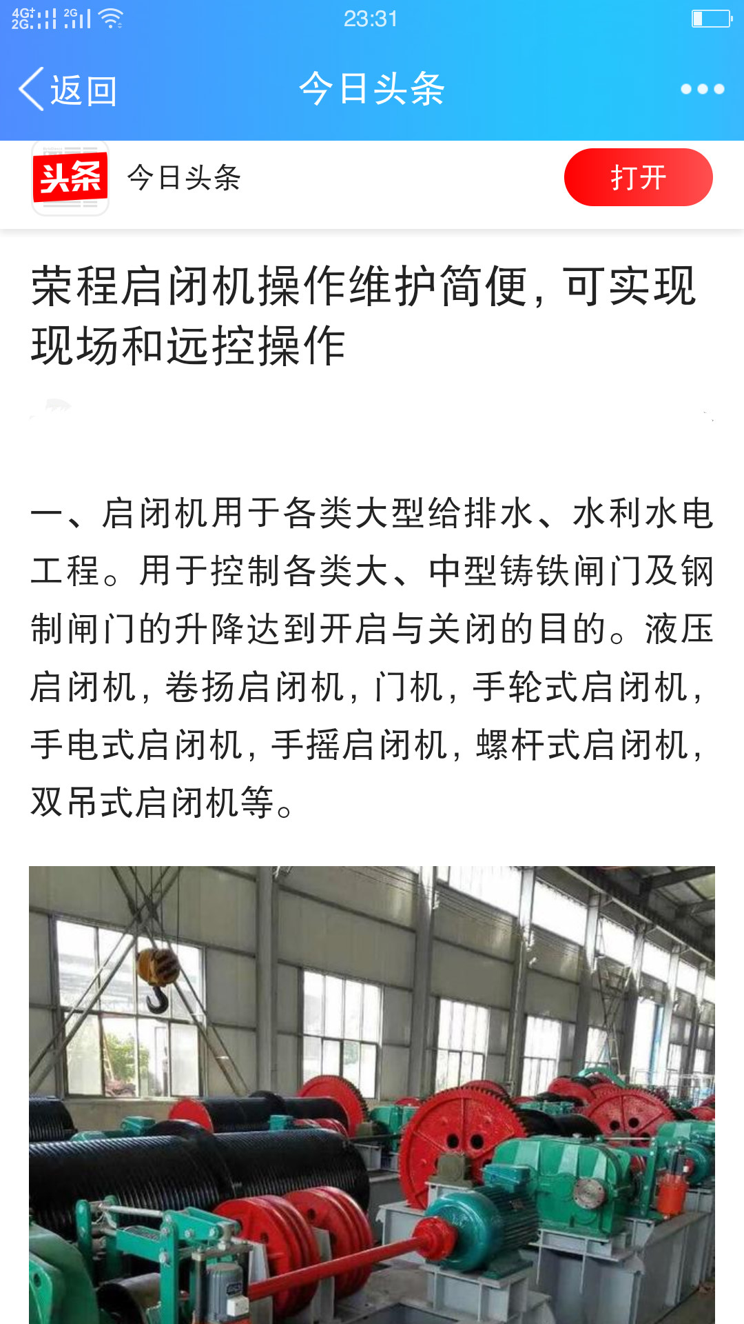 榮程水利卷揚(yáng)啟閉機(jī)上今日頭條啦,榮程水利生產(chǎn)的水利設(shè)備質(zhì)量好價(jià)格有被客戶認(rèn)可,卷揚(yáng)啟閉機(jī)又單調(diào)點(diǎn)和雙吊點(diǎn)兩種。卷揚(yáng)啟閉機(jī)以分為QPQ型普通卷揚(yáng)啟閉機(jī)、QPK型快速卷揚(yáng)啟閉機(jī)、QPG型高揚(yáng)程卷揚(yáng)啟閉機(jī)、QPT型臺(tái)車式卷揚(yáng)啟閉機(jī),QPM型門式卷揚(yáng)啟閉機(jī),QH型弧門卷揚(yáng)啟閉機(jī)。卷揚(yáng)啟閉機(jī)又分為:平門卷揚(yáng)式啟閉機(jī);弧形門卷揚(yáng)式啟閉機(jī);雙吊點(diǎn)卷揚(yáng)式啟閉機(jī);快速卷揚(yáng)式啟閉機(jī);移動(dòng)式臺(tái)車啟閉機(jī);雙吊點(diǎn)卷揚(yáng)式啟閉機(jī)分為:集中驅(qū)動(dòng)和單獨(dú)驅(qū)動(dòng)兩種。