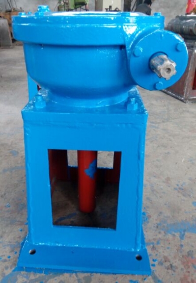 2、將手動(dòng)螺桿啟閉機(jī)置于安裝位置。把一個(gè)限位盤(pán)套在螺桿上,將螺桿從橫梁的下部旋入機(jī)器中,當(dāng)螺桿從機(jī)器的上方露出后,再套上限位盤(pán)。螺桿的下方與閘門(mén)連接。